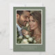 The soothing sage green and off white color scheme evokes tranquility and natural elegance, making it ideal for various wedding themes, from cottage garden ceremonies to elegant ballroom affairs. A vintage-inspired script font adds a personal and intimate touch to your announcement, beautifully complementing the rose design and ensuring your wedding details are presented with clarity and style. On the reverse side you'll find a photo template in a frame design to showcase your favorite photo, as well as ample space to add your wedding website information.