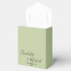 Give your wedding guests a special thank you with our Sage Green Script Minimalist Wedding Favor Boxes. These elegant boxes can be customized with the names of the bride and groom along with the wedding date, adding a personal touch to your big day.