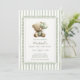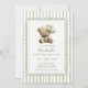 Sage Green Stripe Beary First Birthday Inbjudningar