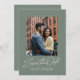 This stylish save the date features a retro inspired script "save the date" under a single photo on a classic sage green background along with simple custom text. The back of this modern save the date has a coordinating green along with a horizontal photo, room for a custom message and a QR code for your wedding website. This vertical design is great for a trendy and stylish couple and it's a great way for the engaged couple to share wedding information with friends and family. Find more colors and styles in the collection by Lea Delaveris Design. Also available as a digital save the date download.