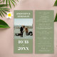 Letar du efter ett elegant modernt bröllopsprogram? Titta på vårt Sage Green Vita 1 Foto Fet Minimalistiskt Bröllopsprogram. Med fet kalligrafi som tillför en touch av sofistikering, erbjuder denna sagegröna inbjudan en ren, enkel look. Detta minimalistiska bröllopsprogram har en modern twist som garanterat fängslar dem med ett öga för subtil sofistikering.