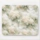 A seamless pattern of delicate ivory hydrangea flowers, beautifully intertwined with sprigs of baby's breath and graceful sage green satin ribbon, accented by elegant bows