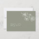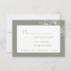 White line art cherry blossoms on a sage green background. Elegant wedding RSVP card. Botanical hand drawn design.