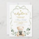 Sage Greenery Bow Coquette Bear Baptism Inbjudningar