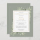 En elegant personlig inbjudan till minneshögtid med botanisk akvarell grönska på en salvia grön bakgrund. Designad av Thisisnotme©