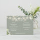 En elegant grön floral slingbelysning sage grön bröllopsinformation inklusionskort personifierat med dina speciella detaljer i stilfull typografi och era namn och bröllopsdatum på baksidan. Designad av Thisisnotme