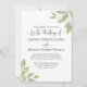 Sage Grey Wedding bjudande med information om kalligrafi. En inbjudan till elegant-trädgårdstema med lövning löv och blommigt baby utandning. Ett enkelt stil med botaniskt inslag.