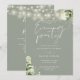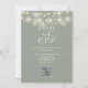 Denna eleganta salvia gröna botaniska grönska blommiga strängljus bröllop kväll fest inbjudan med vackra strängljus och blommig grönska, kan anpassas med din information i chic typografi med din bröllopswebbplats detaljer och din QR-kod på baksidan. Designad av Thisisnotme©