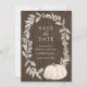 Förbluffa dina gäster med den här eleganten och spara datumet med vackra löv och rustiskt vita pumpor. Lägg bara till din händelseinformation i den här mallen för enkel använda för att göra det till en sorts Spara datumkortet.