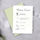 Dela din bröllopsdagschema på ett mjukt och elegant sätt med denna salvia gröna bröllopsdetaljtidslinje. Med förfinad kalligrafi, en ren layout och en praktisk QR-kod för att gästerna enkelt ska kunna komma åt er bröllopswebbplats, förenar denna design modern funktionalitet med tidlös stil. Perfekt för att kombinera med grönska eller botaniska bröllopsteman, ger denna infogning en sammanhängande och sofistikerad touch till din bröllopspappersutrustning.