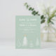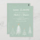 Sage Grön Vinter Jul Spara Datum Bröllop Postkort har vinterundret, julgran / tall, snö och textmall i sagegrön bakgrund. En perfekt design för vinter eller jul bröllopstema. Vänligen klicka på knappen för att anpassa med din text eller namn. Besök min butik "loveyouart" för andra eller liknande mönster.