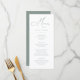 Elegant och en modern, liten meny med liten grönt med grönt fullt på baksidan. Fullständig meny för anpassadet för bröllop eller händelsen.