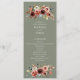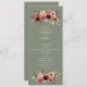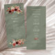 Ställ in en tidslingslös ton för din stora dag med det här prisceremoniprogrammet för grönt blommigt bröllop. Den här dubblan har romantiska vattenfärgsfärger i ro i terracotta och toner och innehåller din ceremonikontur på framsidan och bröllopsfesten på baksidan. Det här programmet passar perfekt för fall- eller trädgårdsbröllop och blandar klassiskt elegans med rustik charm. Anpassa enkelt all text till kostym i firande.