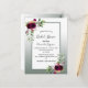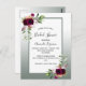 På framsidan: Sage grönt gradient med en sage grönt och vit ram. Dekorerad med blommor, ro i burgundi med grönt. Mallar för briden som ska vara namn och party. Namn och Möhippa är skrivna med ett handskript i stil, svart färgad brev. Bakåt: gröntens övertoningsbakgrund. Tips! Om du inte vill att det ska se ut som ett vykort klickar du på anpassa, går till baksidan och tar bort delaren och lägger till frimärke.