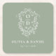 Sage Grönt Blommigt Monogram Bröllop Vapensköld Mo Underlägg Papper Kvadrat
