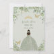 Den här chicen Quinceañera-inbjudan innehåller en quince-tjej som är klädd i en sage grönt-klänning och fin grönt-blommigt och mjuk grönt löv. Anpassa den enkelt och snabbt med dina detaljer genom att helt enkelt trycka på anpassningsknappen för att ytterligare ordna om och formatera stil och placera texten. Även underbar för Sweet 16! c) Lycklig Cat Studio