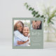 Den här boho-grönten och vita kortet har platshållare för två storlekar av bilder för att tacka dina gäster. Kortets baksida har en blommigt och ett rum för ditt handskrivna meddelande. Det kan användas för att visa hur du uppskattar tillfälle eller firande