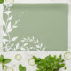 Vitt botaniskt löv mot en sädesbakgrund grönt