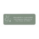 Dessa moderna bröllop-returetiketter har en grönt med en elegant-skript med kalligrafimonogram med initialerna av bruden och trimmen. Sök efter matchande produkter i samlingen, eller kontakta mig genom Zazzle-chatta om du vill ha ytterligare produkter eller andra färgrutor.