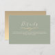 Elegant Sage grönt bröllop-kort med minimalistisk guld-rep och modern kalligrafi. Perfekt för att inkludera ytterligare bröllop-information, t.ex. mottagningar, anvisningar, mottagningsuppgifter eller bröllop webbplats. Koordinerar vackert med fullt sage bröllop site.