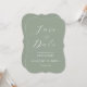 Sage grönt calligraphy bröllop spara datum card inbjudningar