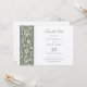 Meddela din speciella dag med elegans och historisk charm med hjälp av William Morris-inspirerad Spara datuminbjudan. Framsidan har grönt- och krämnyanser, och visar en genomtänkt botanisk utformning som ekar den koniska mönstren av rörelsen Arts and Crafts. Det omvända kompletterar med en enkel men sofistikerad grönt gräns, som ger en perfekt ram för dina viktiga detaljer. Denna formgivning fångar naturens skönhet genom dess ornerade och flytande löv, perfekt för par som söker en giftermål av tradition och contemporary stil. Högkvalitativ utskrift ser till att den känsliga informationen visas och bjuder in dina gäster att reservera datumet för ett evenemang att minnas.
