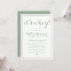 Inbjudan gäster till ditt evenemang med den här inbjudan till anpassadets babydusch. Den har ett calligraphy-skript för grönt sage. Anpassa genom att lägga till information. Den här inbjudan till barnduschen är perfekt för vilket babyduschtema eller grönt som helst.