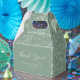 Den här elegant bröllop-förmånslådan har en delikat blommigt för prydnadsmönster med blommor, fåglar och löv på en grönt. Texten kombinerar handskript och serif typsnitt för en snyggt och ett modernt utseende. Perfekt för vinter- eller höstfallbröllop.