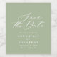 Sage grönt elegant modern bröllop spara datum föredrar presentetikett vin. Ett speciellt, unikt sätt att meddela dina speciella nyheter.