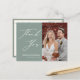 Skicka Elegant-Grönt Skript Modern Photo Minimalist Bröllop Tack-vykort. Visa hur tacksam du är för dina vänner och din familj som gjorde bröllop till extra speciell med detta vackra fototackkort från bröllop. Alla texterna är i förväg ordnade så att du enkelt och snabbt kan anpassa dig till din egen ord.
