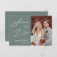 Sage Grönt Elegant Script Modern Photo Bröllop Spara Datumet