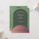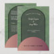 Fira bröllop i stil med denna enkla båge och runda former i naturen jordnära tonar som sage grönt och ett glansigt ro guld med en grön bakgrund. Bröllopbjudan är enkel, elegant och har en modern boho chic stil. Anpassa den med dina detaljer, ditt monogram och program för ett verkligt anmärkningsvärt firande.