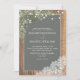 Vi är så lycklig med den här traditionella grönten eucalyptus botaniska, rustiska bröllopsinbjudan! Blommigtar med handskrivna manustypografi, sage grönt eucalyptus vattencolor, en honeyed barnwood struktur, faux Fransk Alençon snöre och varm, glödande sträng ljus. En del av en bröllop-svit som vi hoppas att ni kärlek lika mycket som vi gör: https://www.zazzle.com/collections/trendy_light_gray_rustic_wood_lace_floral_wedding-119389924642700932 Copyright Elegant Inbjudan, alla höger reserverade.