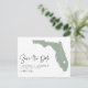 Meddela din bröllop-dejt till familj och vänner med det här statliga temat spara datum meddelande-vykort. Den illustrerar delstaten Florida, enkel typografi och handskript. Anpassa genom att lägga till namn, datum, plats och annan information. Den här grönten i Florida sparar datumkortet som perfekt för alla bröllop-teman.