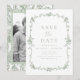 Sage Grönt Fransk Victorian Blommigt Photo Bröllop Spara Datumet