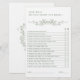 Klassisk sage grönt blommigt möhippa "How well do you know the bride?"-spel med anpassningsbar text på baksidan. Om du vill ha en mer avancerad anpassning av den här designen klickar du på knappen DESIGN VERKTYG ovan!