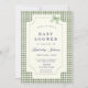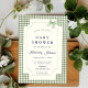 Vi firar en liten nyhet med den här charmerande babyduschinbjudan, som innehåller en klassisk grönt gingham gräns och back, elegant, marinskript typsnitt och en söt vattenfärgsbåge överst. Perfekten för firande mellan land och stil är denna inbjudan både varm och snyggt. Anpassa texten för din händelseinformation och skapa ett inbjudan som gästerna ska ta hand om.