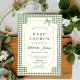 Vi firar en liten nyhet med den här charmerande babyduschinbjudan, som innehåller en klassisk grönt gingham gräns och back, elegant, svart manus typsnitt och en söt vattenfärg överst. Perfekten för firande mellan land och stil är denna inbjudan både varm och snyggt. Anpassa texten för din händelseinformation och skapa ett inbjudan som gästerna ska ta hand om.