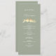 Personlig Sage grönt bröllop-menyn med en elegant faux guld lovebird illustration och gäst namn överst. Med en snyggt och tankfull beröring för varje ställe-inställning innehåller den här menyn redigerbart kurser för en formell middag. Perfekt för romantiskt, modernt bröllop i vår, sommar eller fall. Matchar flodfåglarnas bröllop-svit i fullt.