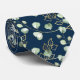 En enkel halslips i elegant bröllop med sage-grönt och av eucalyptus sprickor i guld i ett lätt mönster mot en fast marin blå bakgrund.