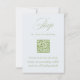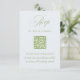 En OSA kort för elegant med skannerbar QR-kod - perfekt för par som väljer digitala svar. Har mjuk grönt och serif typsnitt på en skarp vit bakgrund, som matchar modern trädgård eller formellt bröllop utomhus. Gäster kan skicka OSA via bröllop webbplats och få tillgång till information om händelser i fullt med hjälp av en snabbsökning. Helt redigerbart. Del av "Iris"-samlingen i Bröllop — klicka på samlingslänken på den här sidan om du vill bläddra i samordningen av delara som inbjudningar, menyer, skyltar med mera.