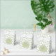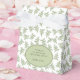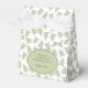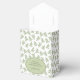Den här tält-förmånslådan har en elegant mönster av grönt löv på en vit bakgrund. En ljust grönt ovala på framsidan ger anpassningsbar för ett personligt tackord till er och namn till bruden och brudgummen.