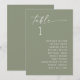Ett minimalistiskt enkelt manusdiagram med bröllop i den spanska grönten, sage grönt färg. Du kan ändra antalet bord, namn och skapa så många kort som behövs i bord. Lägg var och en i vagnen separat. Lämpligt för botaniskt trädgårdsbröllop i sommar. Kontakta mig om du behöver fler artiklar.