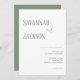 Den moderna inbjudan till Elegant bröllop innehåller ett skript i sage-grönt på ett skarpt vitt kort. Den enkla, men djärva utformningen kommer att komplettera er moderna bröllop stil.