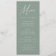 Modern meny-skriptminimalistisk design i sidled grönt och vit, enkel och elegant. Underbara bröllop-menykort för moderna bröllop och andra evenemang. Visa alla matchande delar i samlingen.