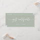 Den här moderna, sage-grönten och det vita presentcertifikatet har handskrivna skript av elegant. Du kan lägga till logotypen och en QR-kod på baksidan för att få ett enkelt, snyggt och professionell utseende.