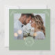 Lägg märke till det kommande firande med våra Sage Grönt Monogram Bröllop spara datum-kort, som var och en är försedd med ett anpassade foto av paret lycklig. De här korten har inte bara en tidlös utformning av monogrammet och den klassiska elegansen, utan ger också en personlig med ditt omhuldade förlovning-foto. Ange tonen för en tidlöshet och elegant bröllop och dela glädjen i din kärlek-historia med vänner och familj på ett sofistikerat och minnesvärt sätt.