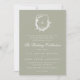 sage grönt monogram klassisk läafy vapensköld bröl inbjudningar