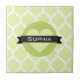 Chic Moroccan lattice mönster i en lätt grönt färg med en grönt- och grått-namnskylt med hjärta så att du lätt kan anpassa ditt namn på. Ett sött trendig quatrefoil mönster-design som skulle ge en personlig i coola till hennes födelsedag, Alla hjärtans dag, julklappar eller studenten-gåvor.