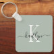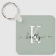 Den här moderna nyckelkedjan för grönt av bilder med det första namn i ett skrivteckensnitt i trendiget svart och det första tecknet i ett modernt teckensnitt i vitt är perfekt för nycklar.